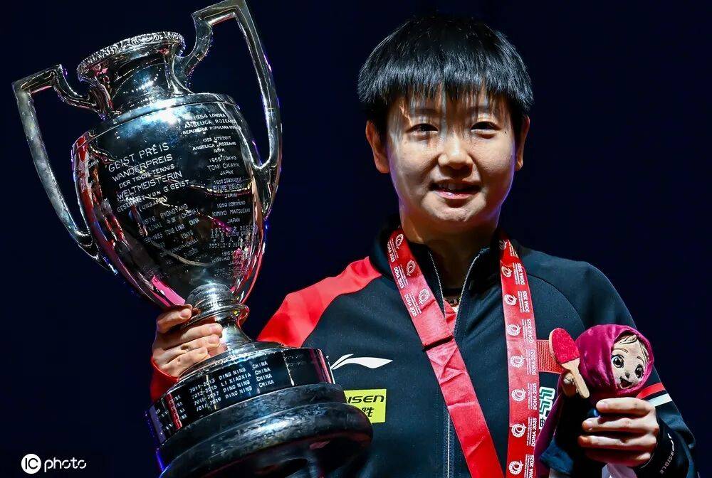 当地时间2025年5月25日,卡塔尔多哈,2025年多哈世乒赛女单颁奖仪式,孙颖莎捧起冠军奖杯。