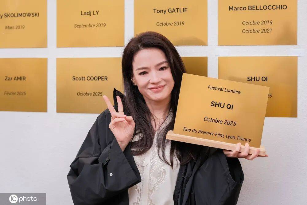 当地时间2025年10月13日,法国里昂,演员舒淇在卢米埃尔电影节期间为其在电影人墙上的纪念牌揭幕。