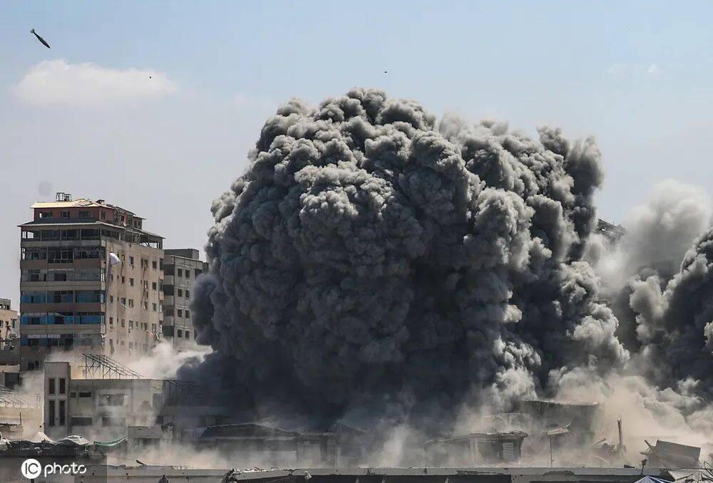 当地时间2025年9月10日,加沙城,巴以冲突持续,以色列军队对高层建筑进行轰炸。