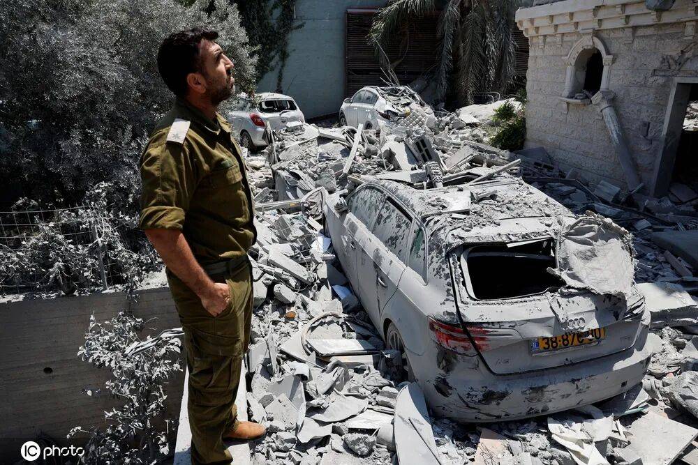 当地时间2025年6月15日,以色列塔姆拉,来自伊朗方向的导弹击中当地建筑和车辆,救援工作进行中。