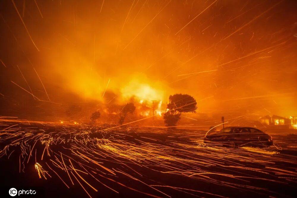 当地时间2025年1月7日,美国加州洛杉矶县帕萨迪纳,当地山火持续肆虐,宛如“世界末日”。